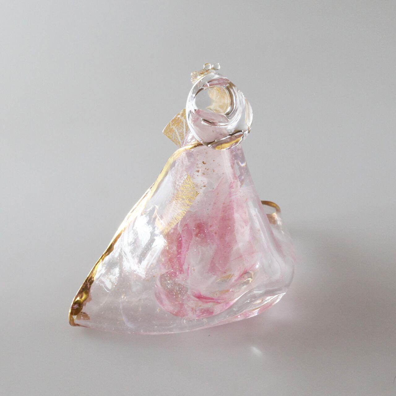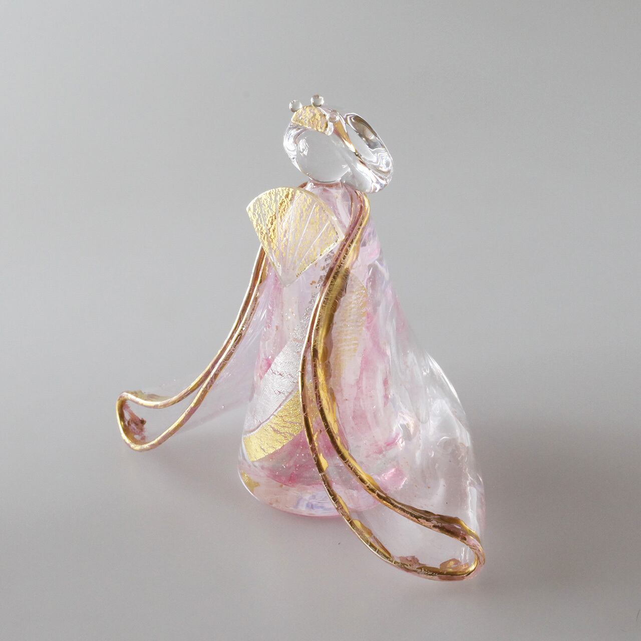 白×ピンク赤×金銀雲母を織り交ぜた着物や身体、数多く入り込んだ気泡がガラスの透明度や輝きをより一層際立たせます。
