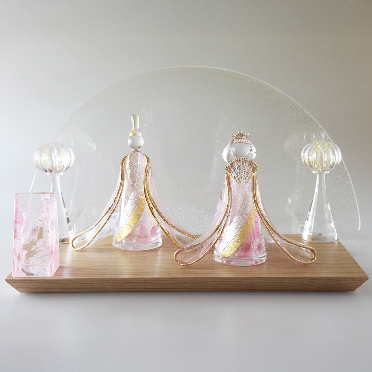 女の子の初節句の贈り物として、お部屋のインテリアとして、たくさんの方に喜ばれているガラス製のお雛様になります。