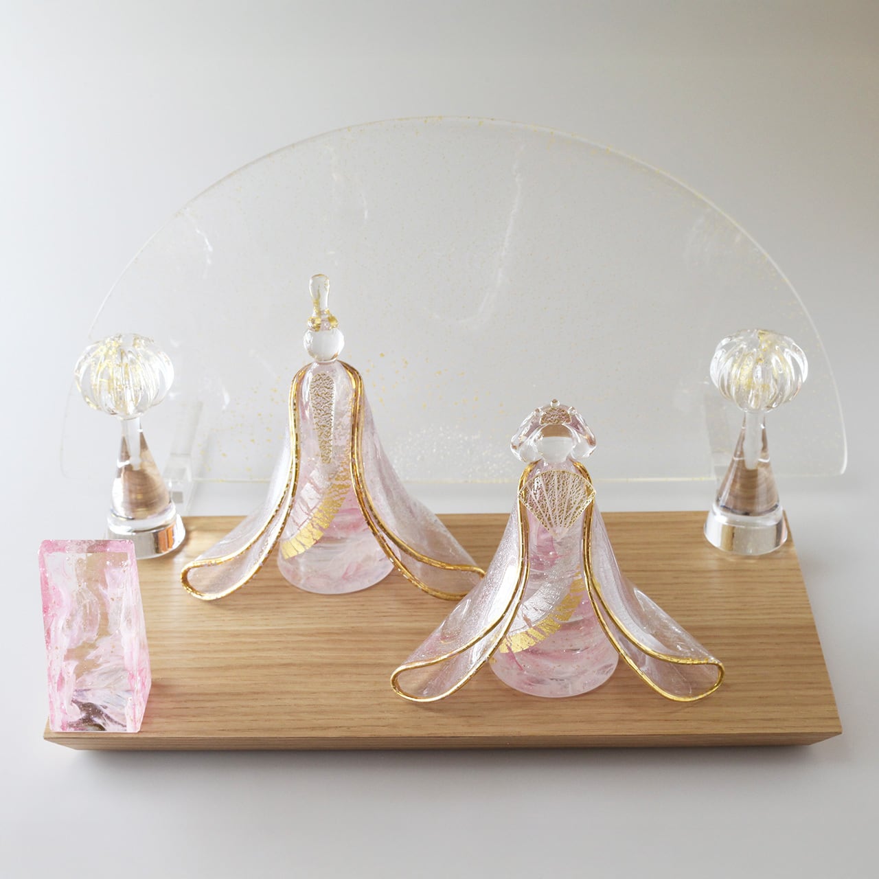 一点一点丁寧に仕上げたワンアンドオンリーで繊細なガラスのお雛様となります。