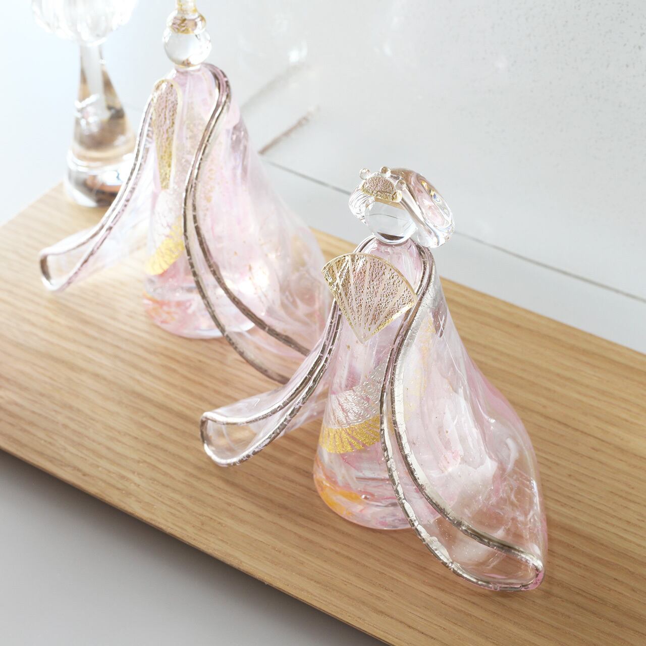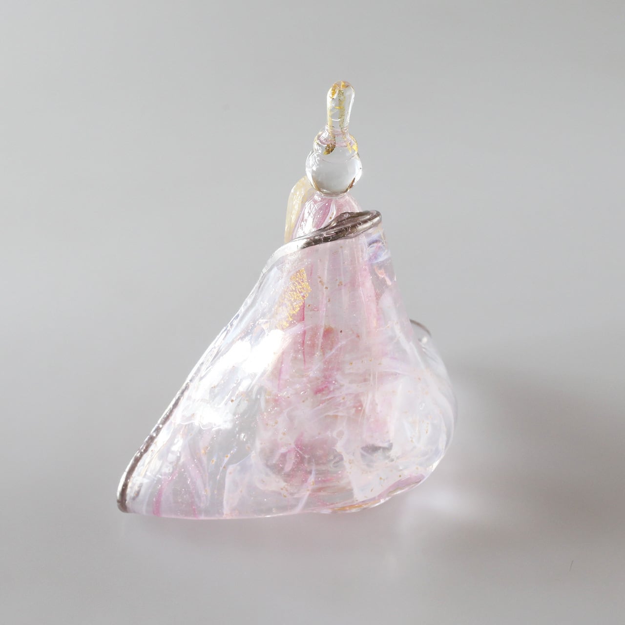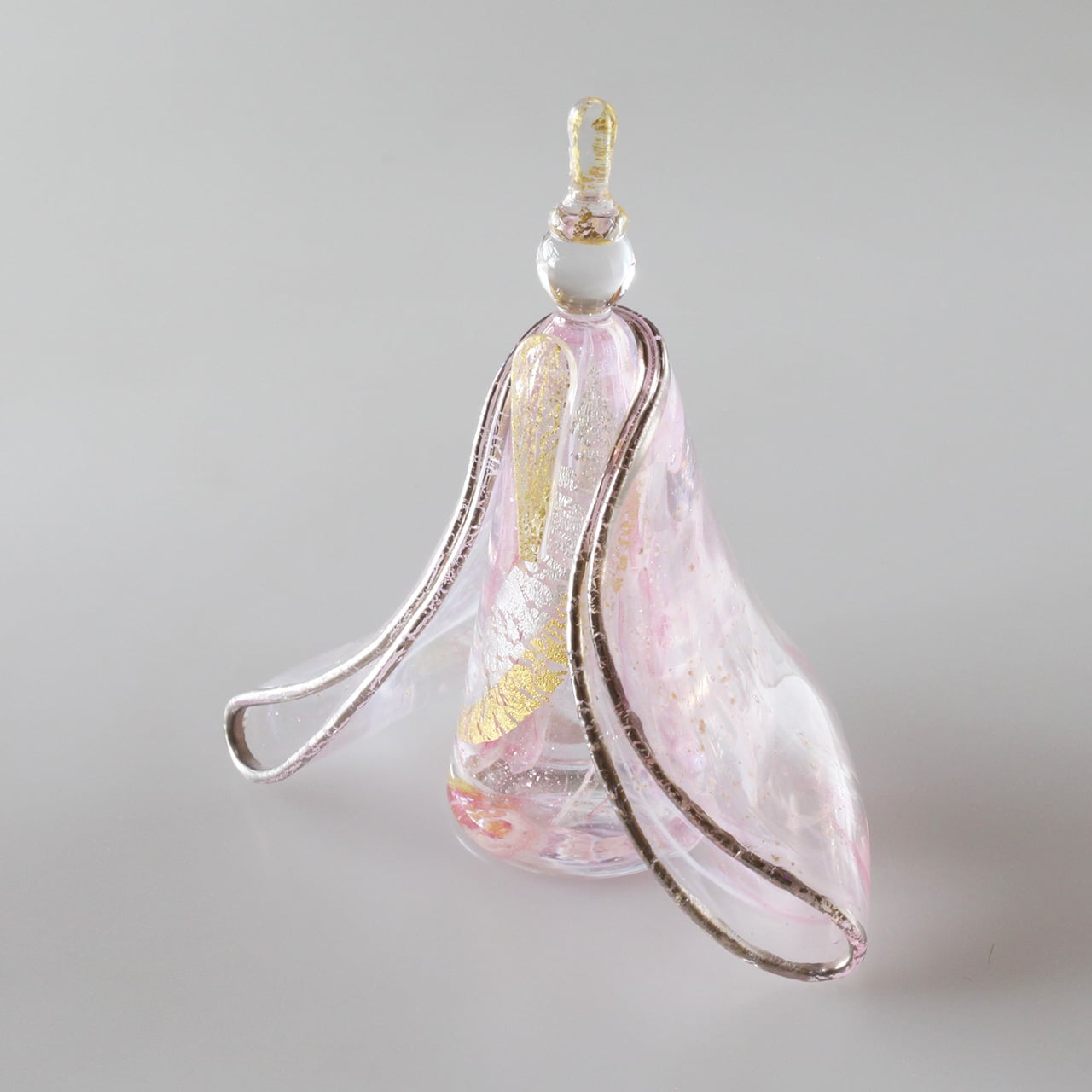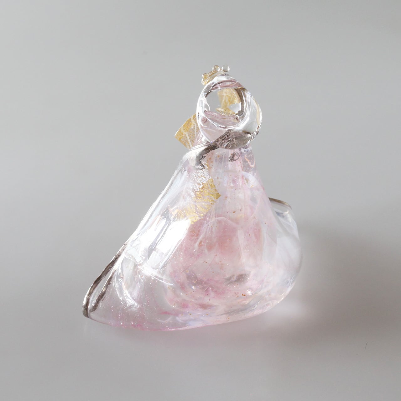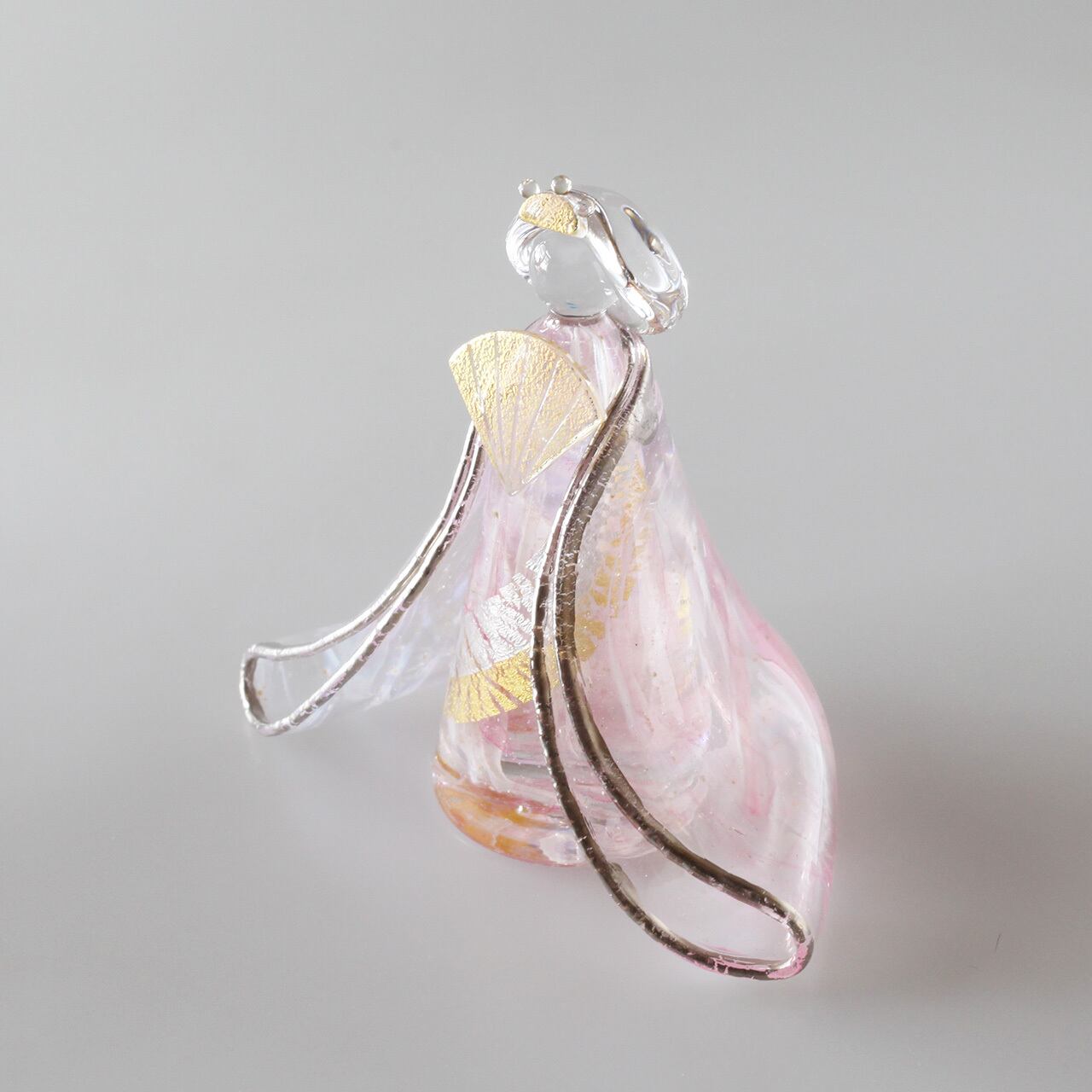 白×ピンク赤×金銀雲母を織り交ぜた着物や身体、数多く入り込んだ気泡がガラスの透明度や輝きをより一層際立たせます。