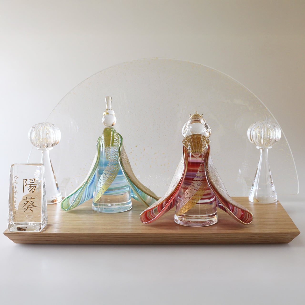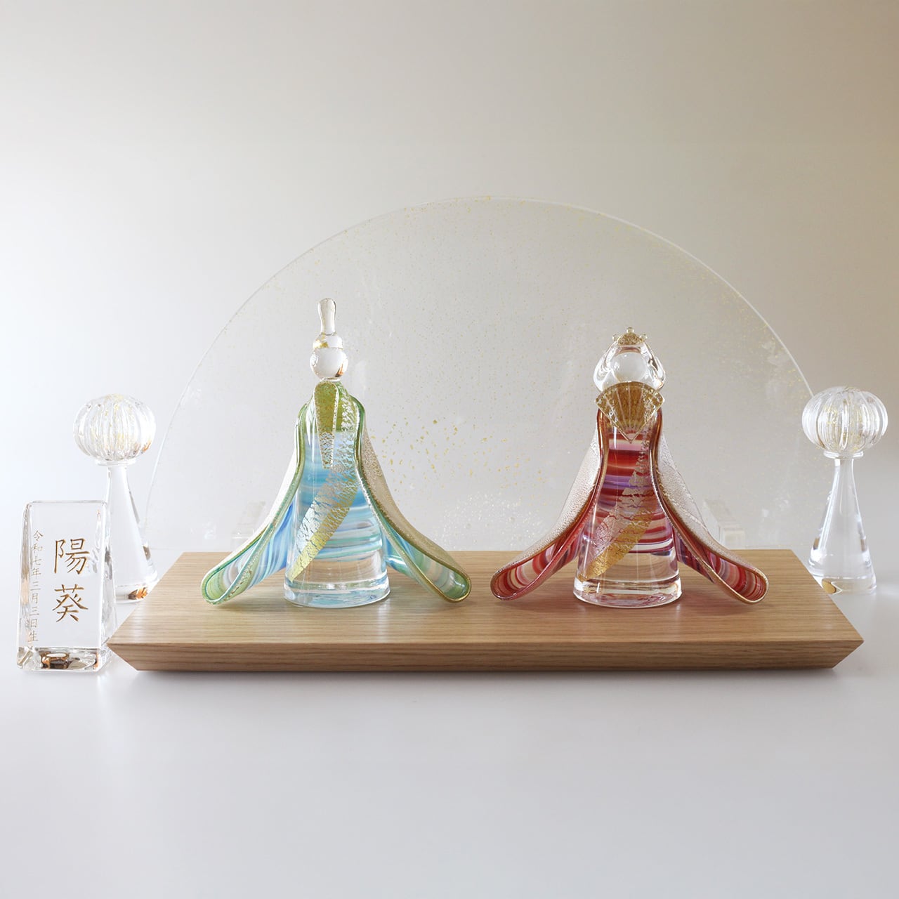 女の子の初節句の贈り物として、お部屋のインテリアとして、たくさんの方に喜ばれているガラス製のお雛様になります。