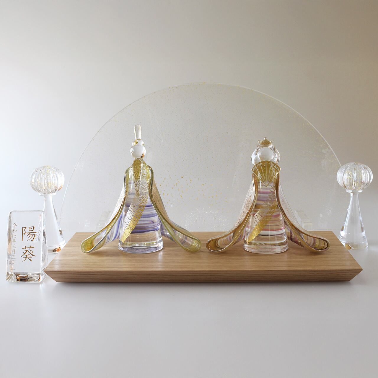 女の子の初節句の贈り物として、お部屋のインテリアとして、たくさんの方に喜ばれているガラス製のお雛様になります。