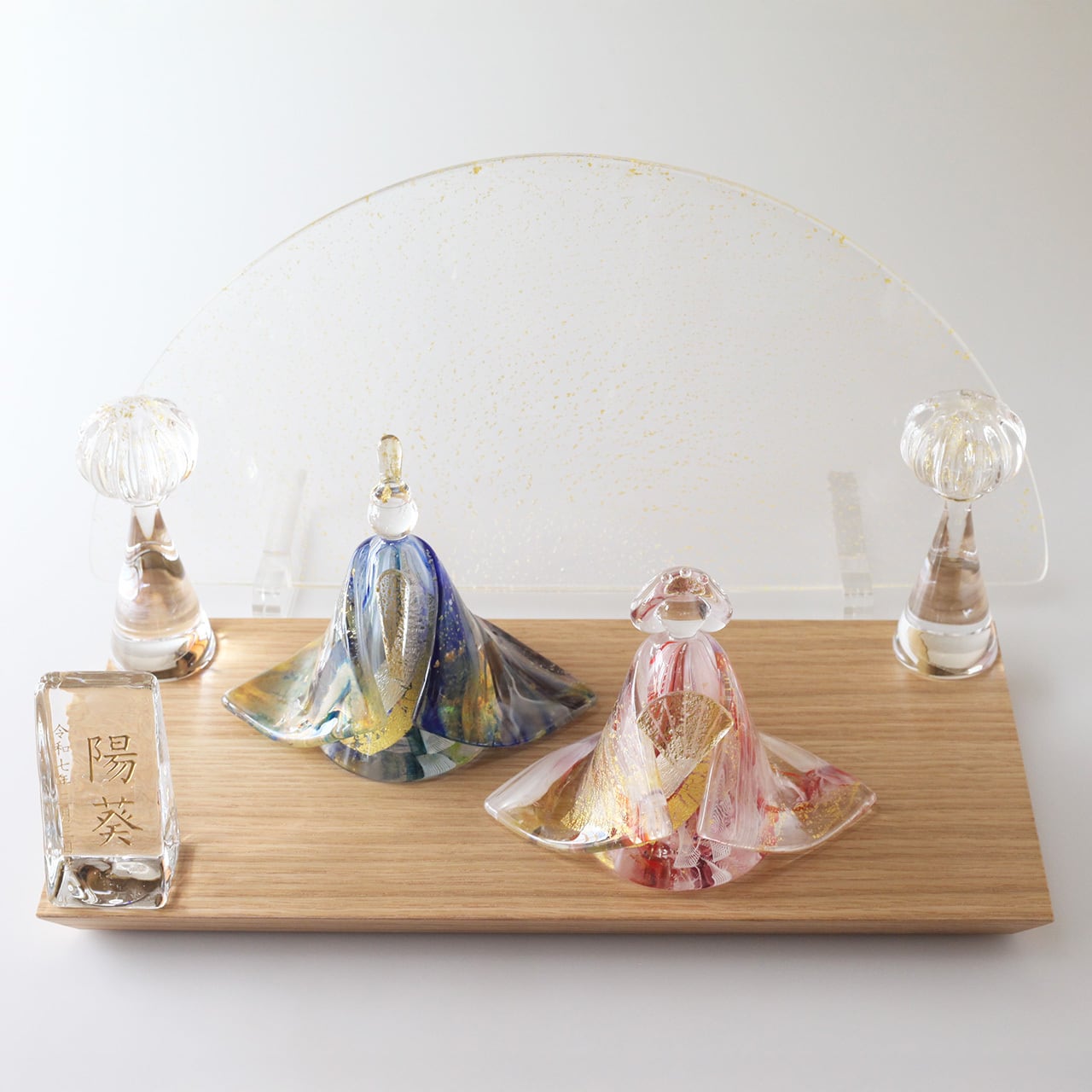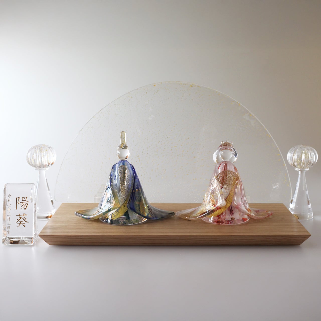 女の子の初節句の贈り物として、お部屋のインテリアとして、たくさんの方に喜ばれているガラス製のお雛様になります。